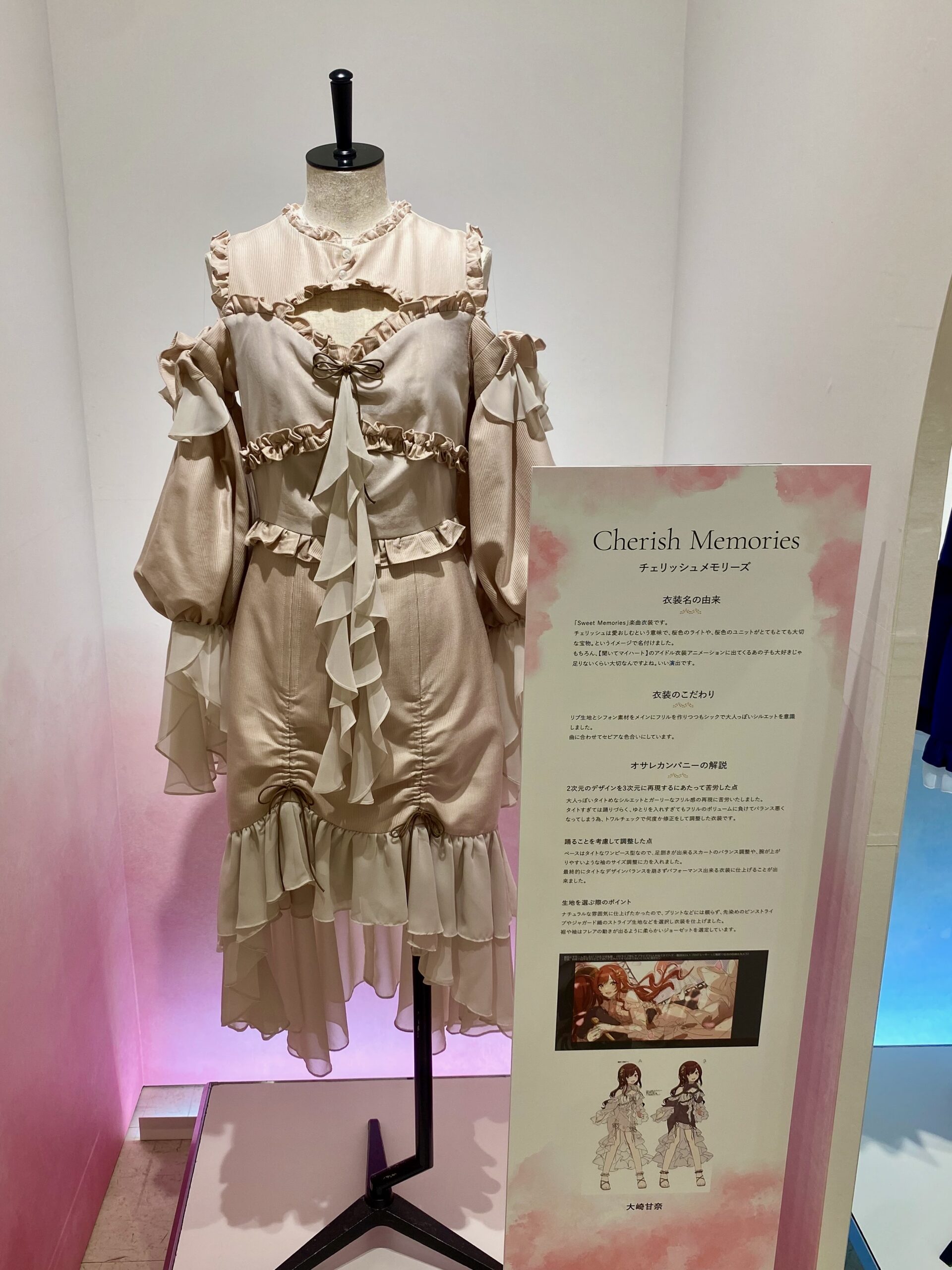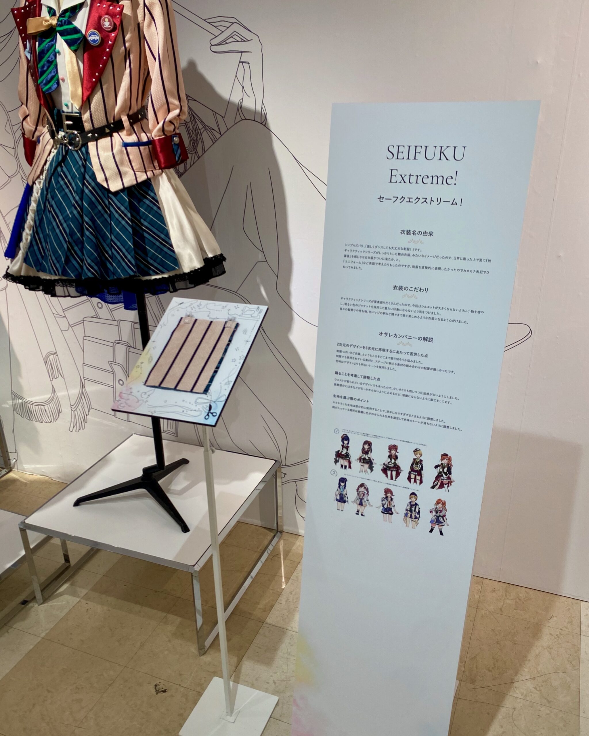 会場グラフィックでは、1着ごとに込められた背景や制作秘話を整理したパネルを全ての衣装に設置するなど、来場者が理解と感情の両面から衣装の魅力に触れられるよう構成しました。