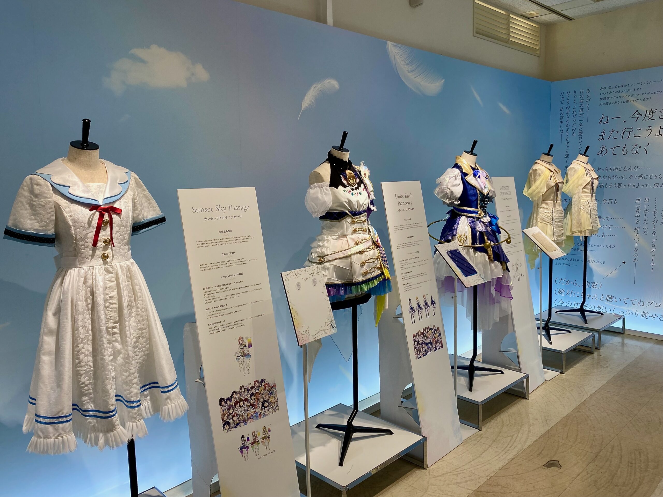 本展示では、アイドルたちの個性を体現する250着以上の衣装を主役に、来場者が1着1着とじっくり向き合える空間づくりを目指しました。